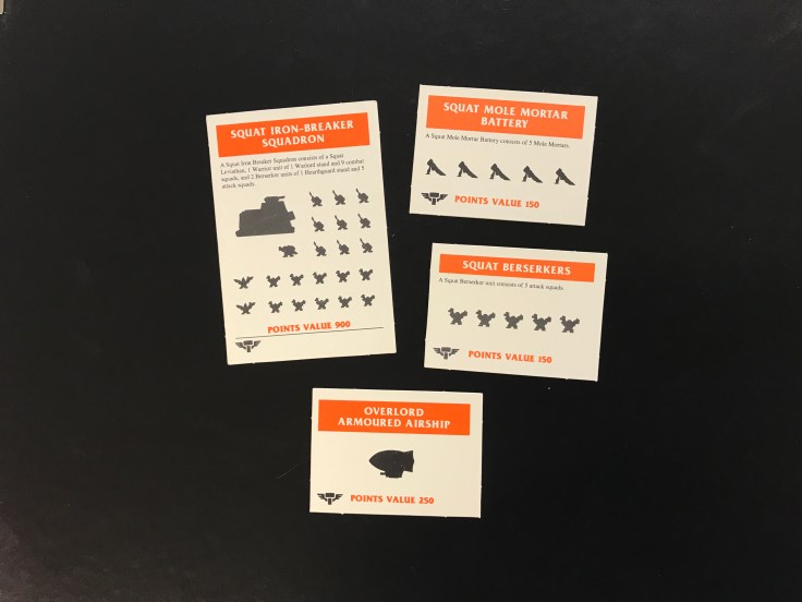 For Squats their speciality are super large vehicles, such as the Leviathan and Colossus, very large artillery pieces and hard hitting bearded bikers.