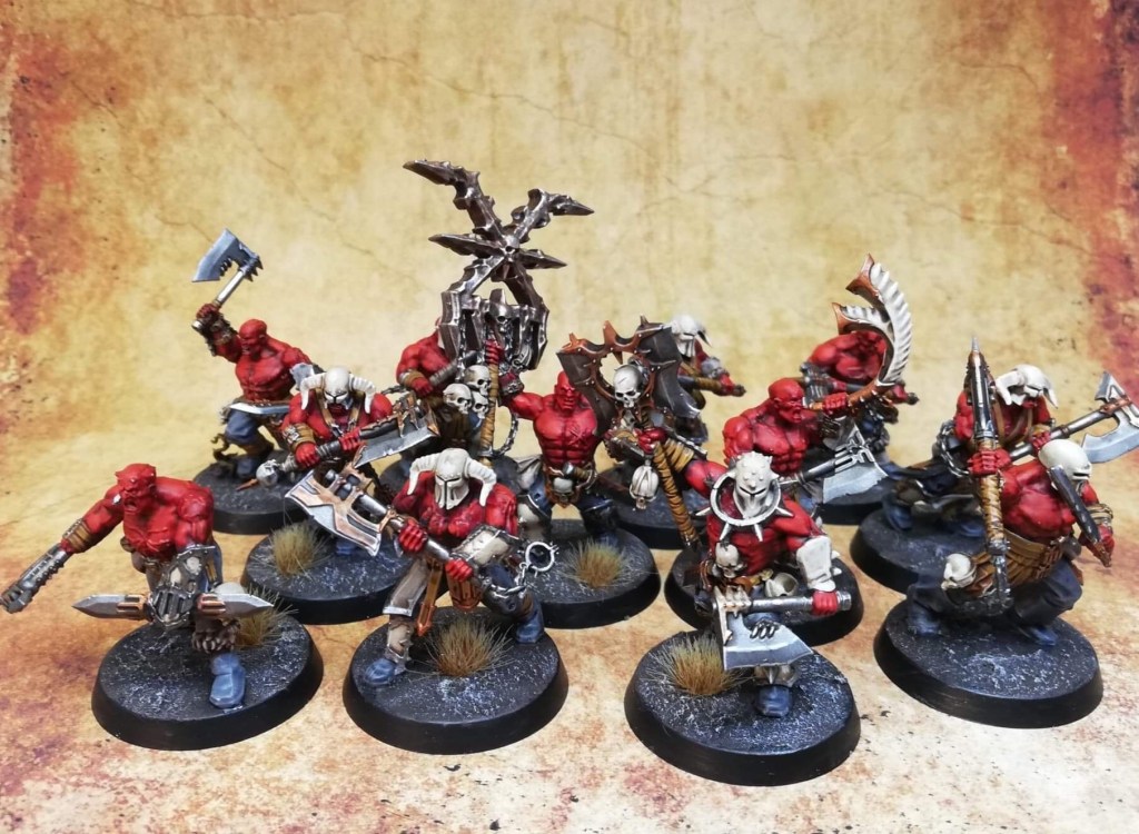 Last night I had nightmare visions of giant men clad in fur and iron, their skin painted red as blood. Could these dreams that haunt me, be related to my task of painting a unit of Khurgan Marauders? I best get on with it – or I fear these dreams will drive me mad.