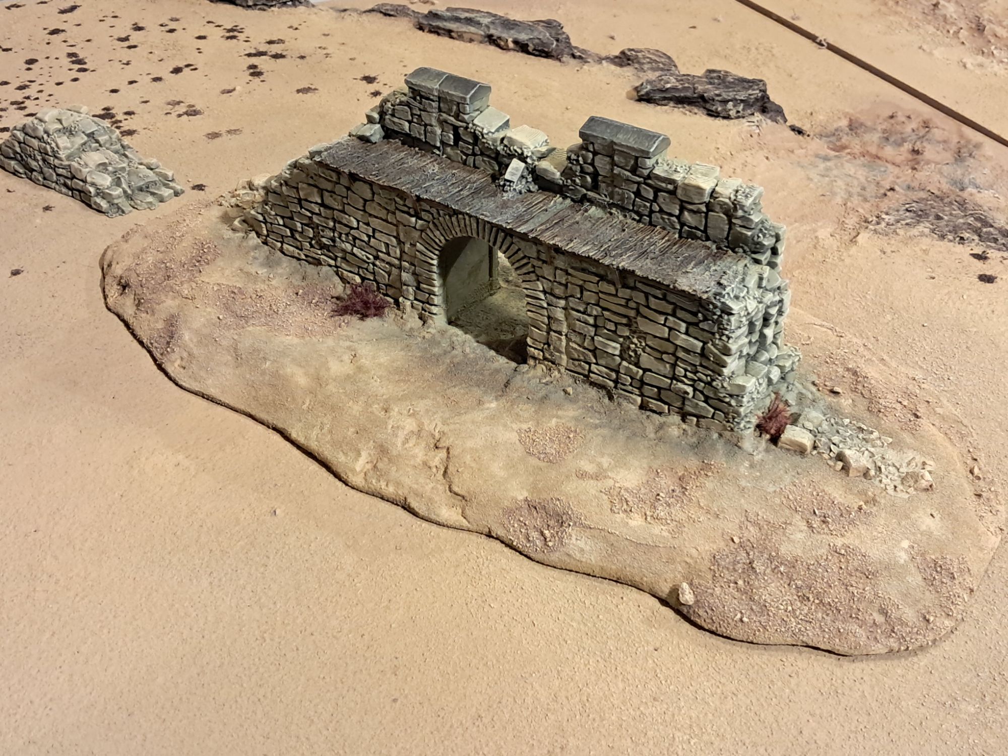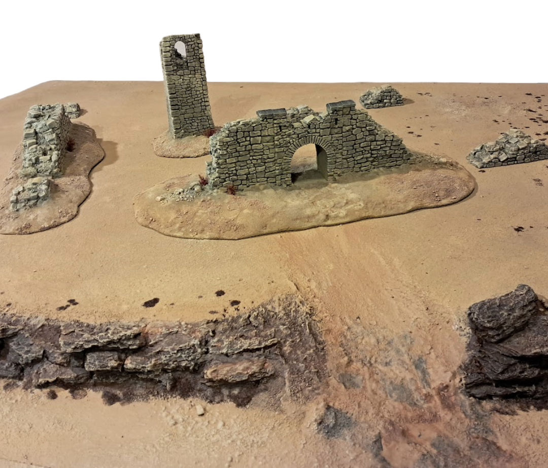 The best part of playing wargaming campaigns is that it always creates a need for some specific terrain pieces. In this case I wanted to make a set of desert ruins usable for a Chain of Command campaign that takes place in the North African desert. In the campaign Fort Hackubar, I imagine it is a ruined garrison that dates back from around the times of the crusades, after which it may have been used by serveral nations such as the colonial French or the Ottoman empire. Importantly, I wanted it to be generic enough so that it could be used in serval types of games, from fantasy to historic settings. I briefly thought about scratch building it in foam but quickly found myself scouring the web for 3d printable ruins. I found a set of ruined norman fort walls from printablescenery.com that I found generic enough to form the base of my ruins.